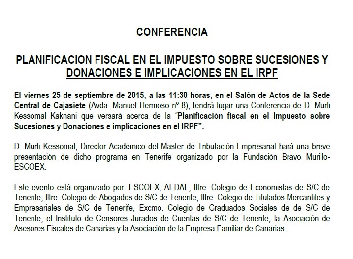 La entrada es libre previa confirmación en: sandra.blanco@escoex.com o en las secretarías de los…